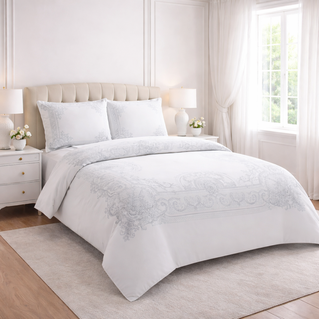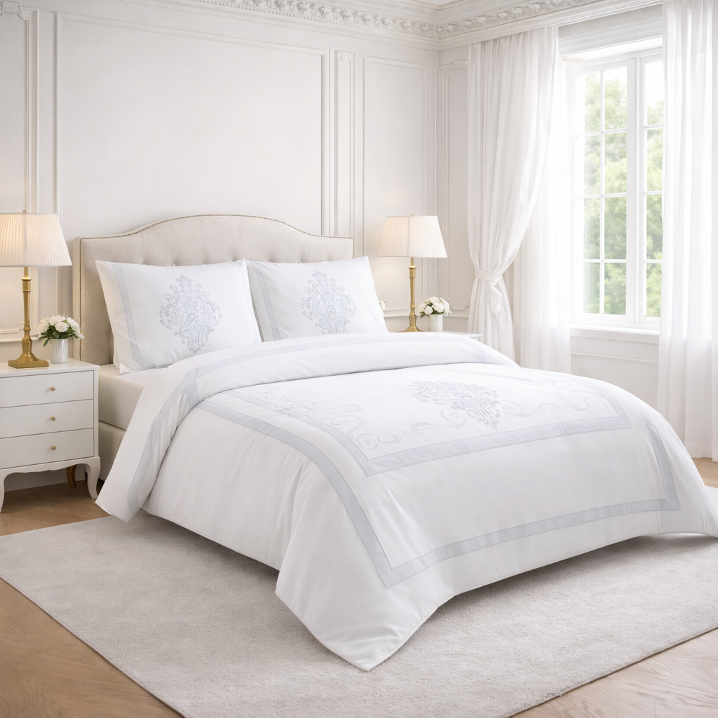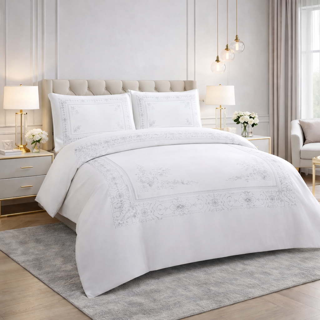 סט מצעים רקום יוקרתי דגם CARLTON WHITE