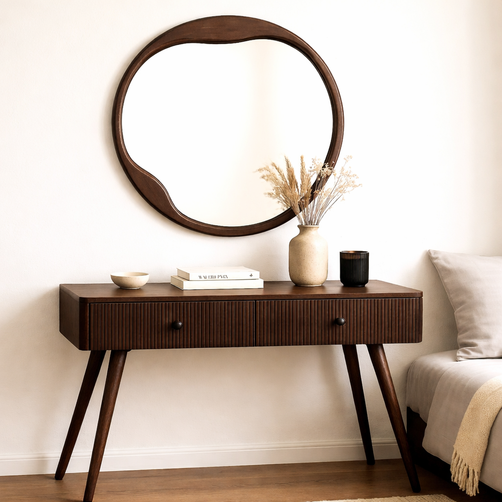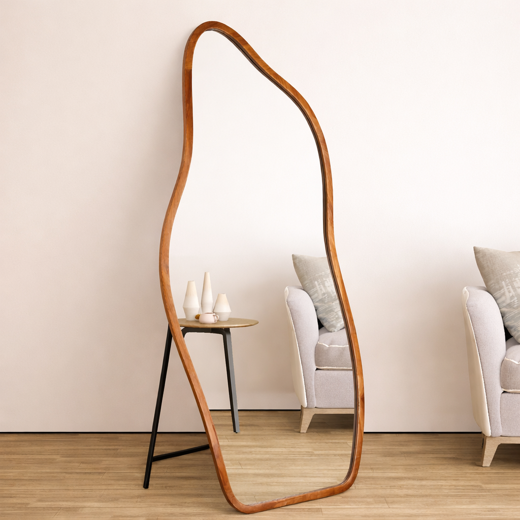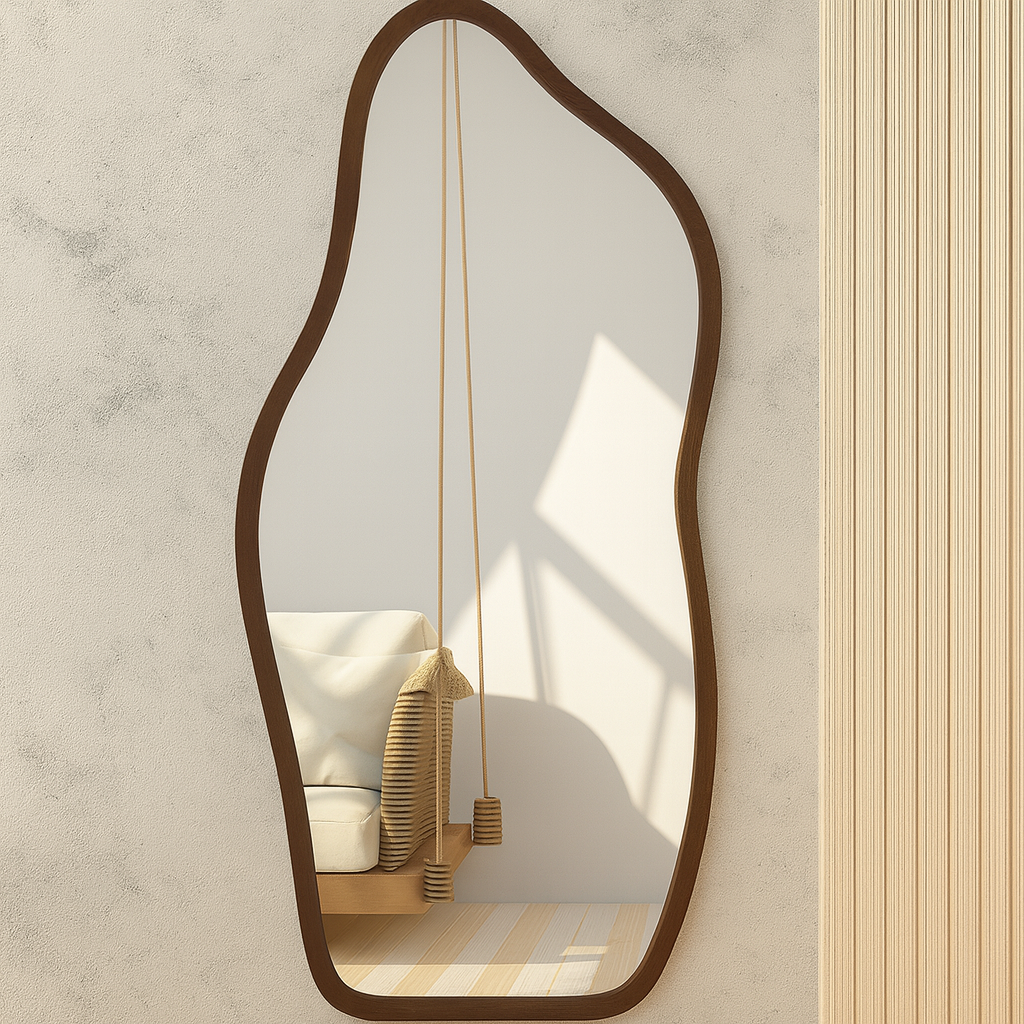 מראה אמורפית עץ צבע אגוז תלייה S-XL