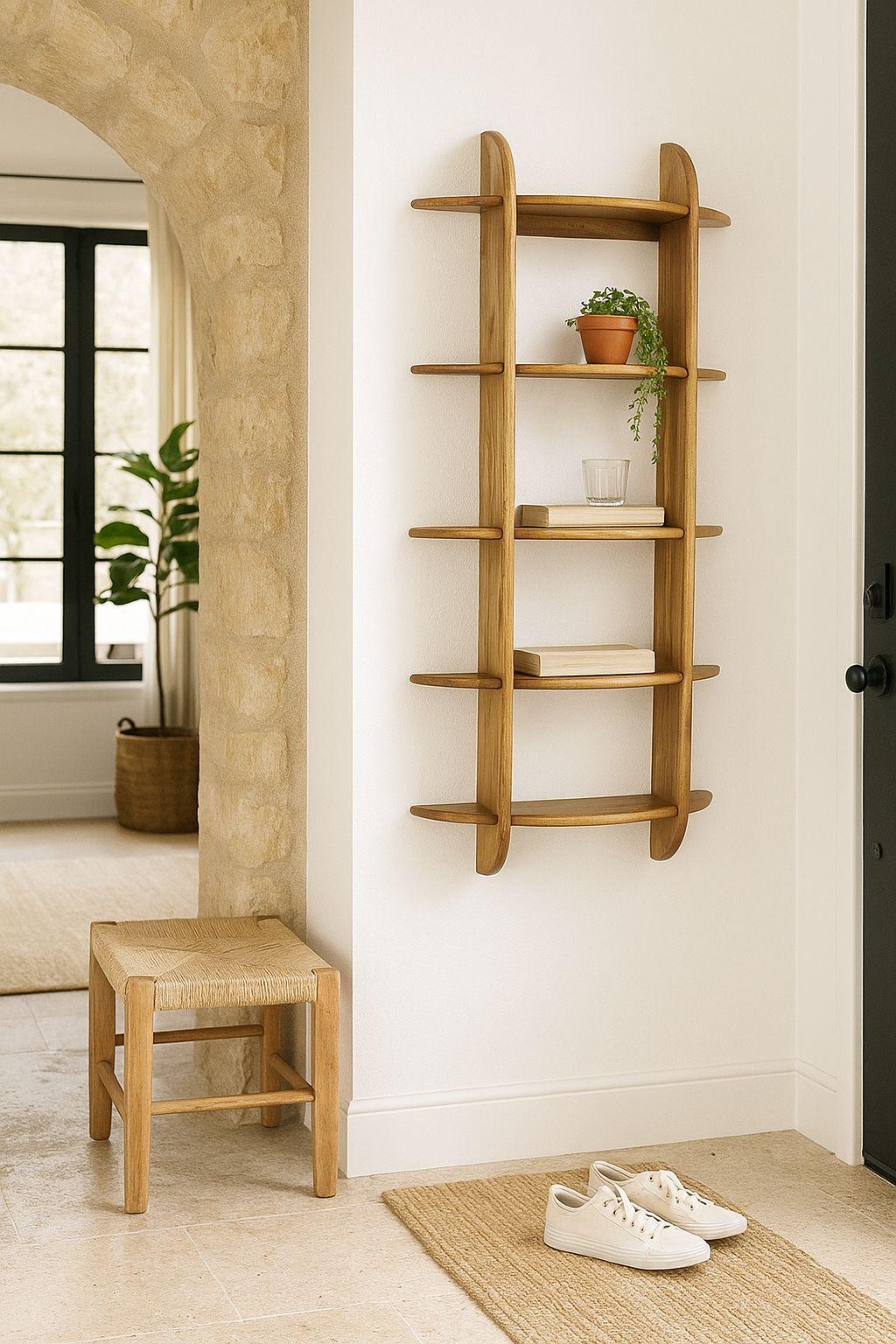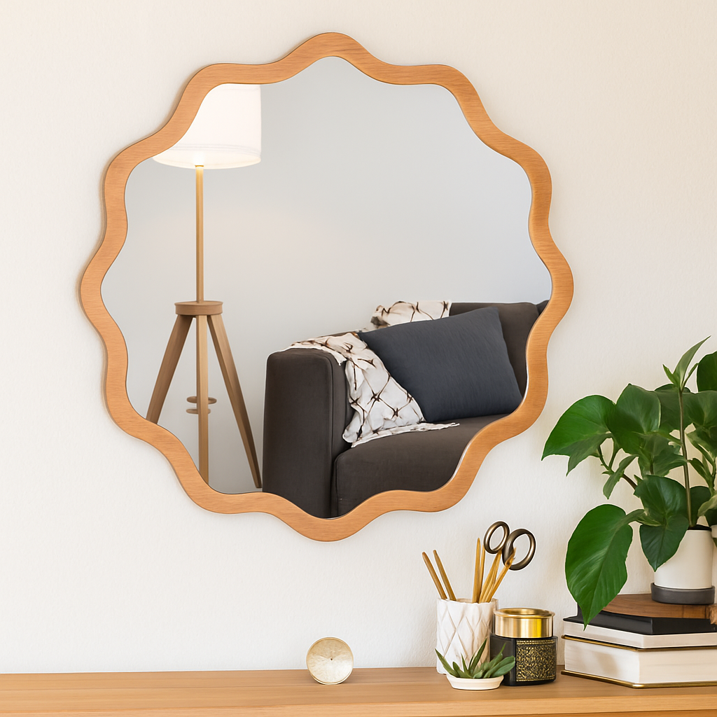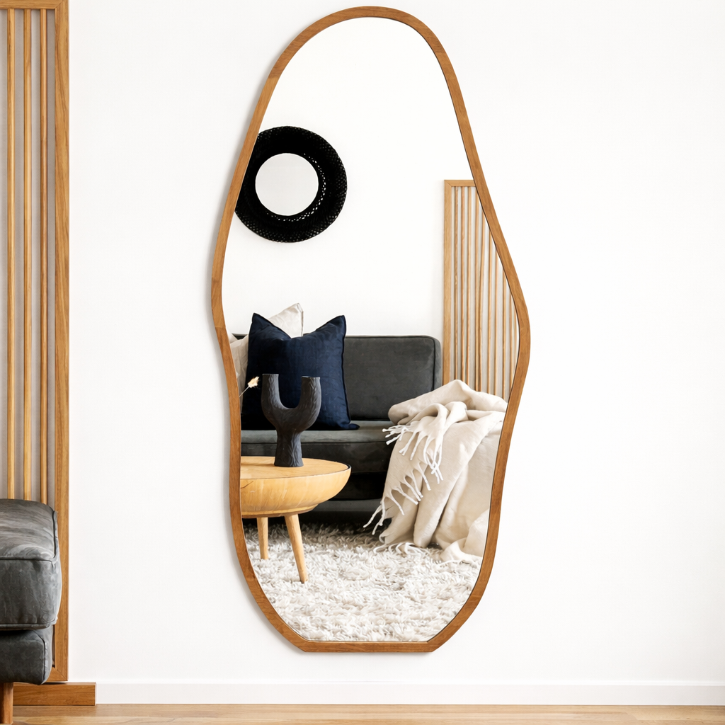 מראה אמורפית עץ מלא לתלייה צבע טבעי