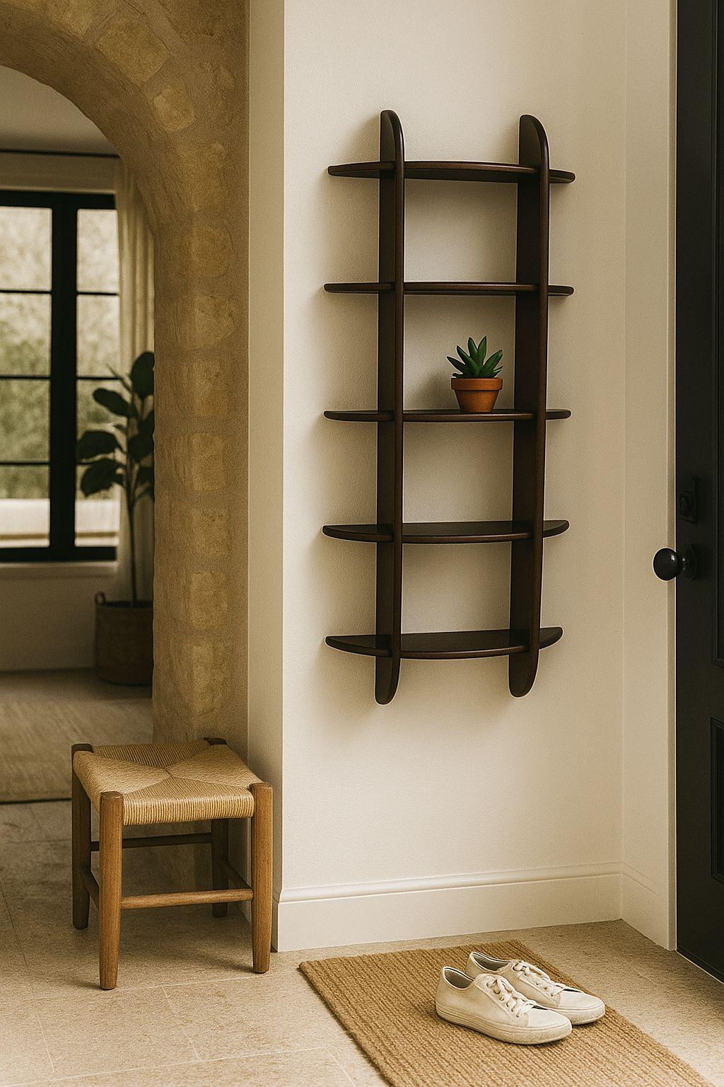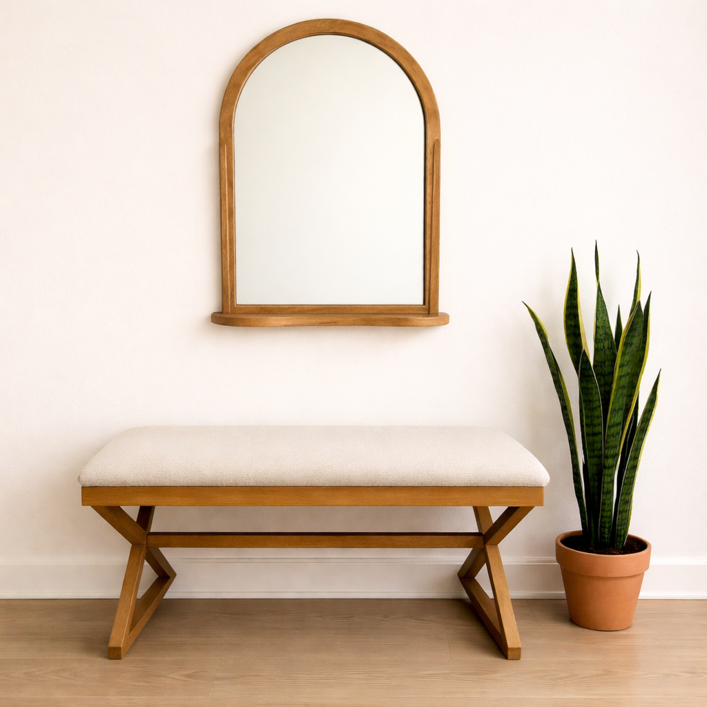 מראת עץ מלא קשת רחבה לתלייה גוון טבעי\אגוז