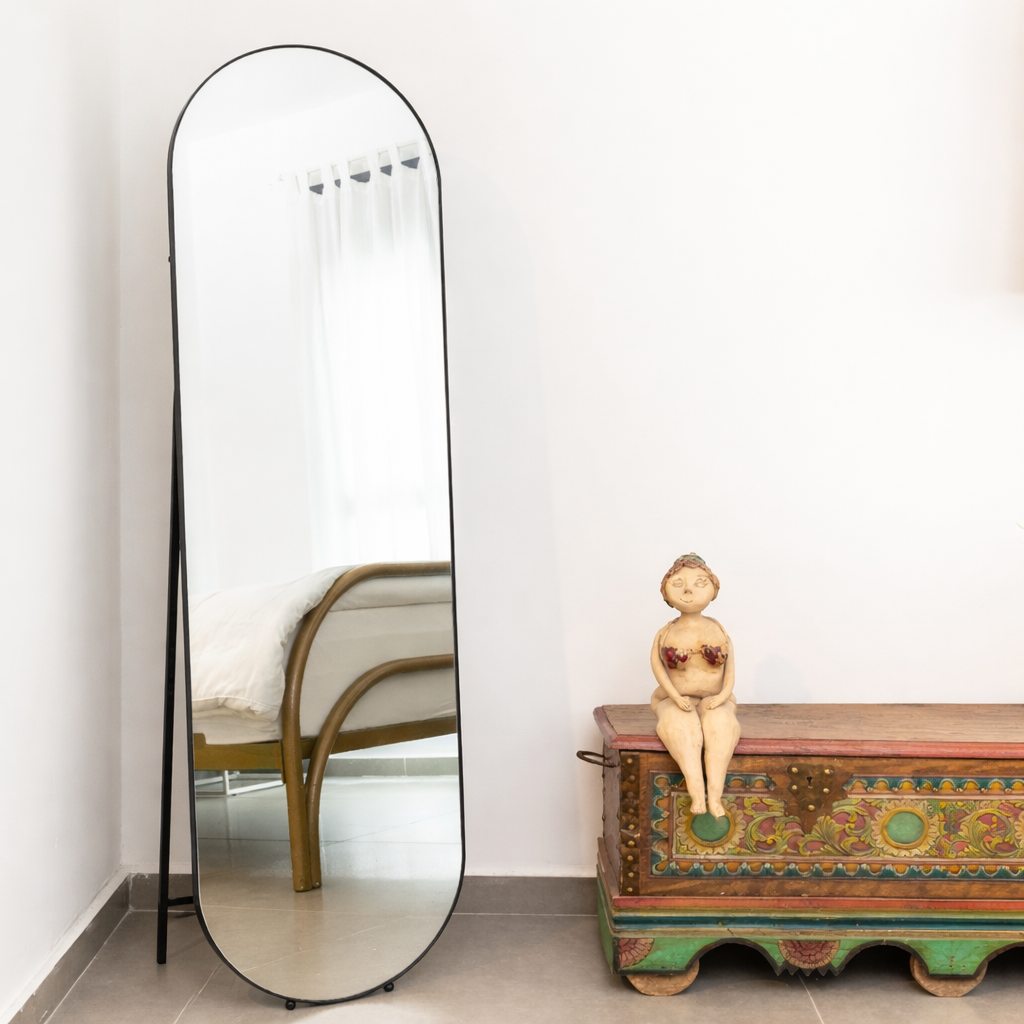 מראה רצפתית עץ מלא מסולסלת רגל + תלייה קטן\גדול