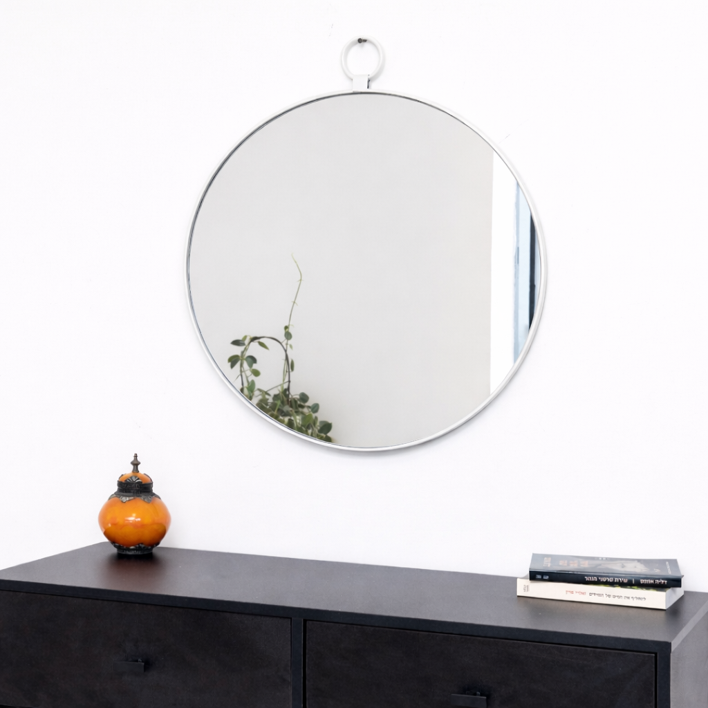 מראה מתכת עגולה פרופיל דק צבע לבן S-XXL