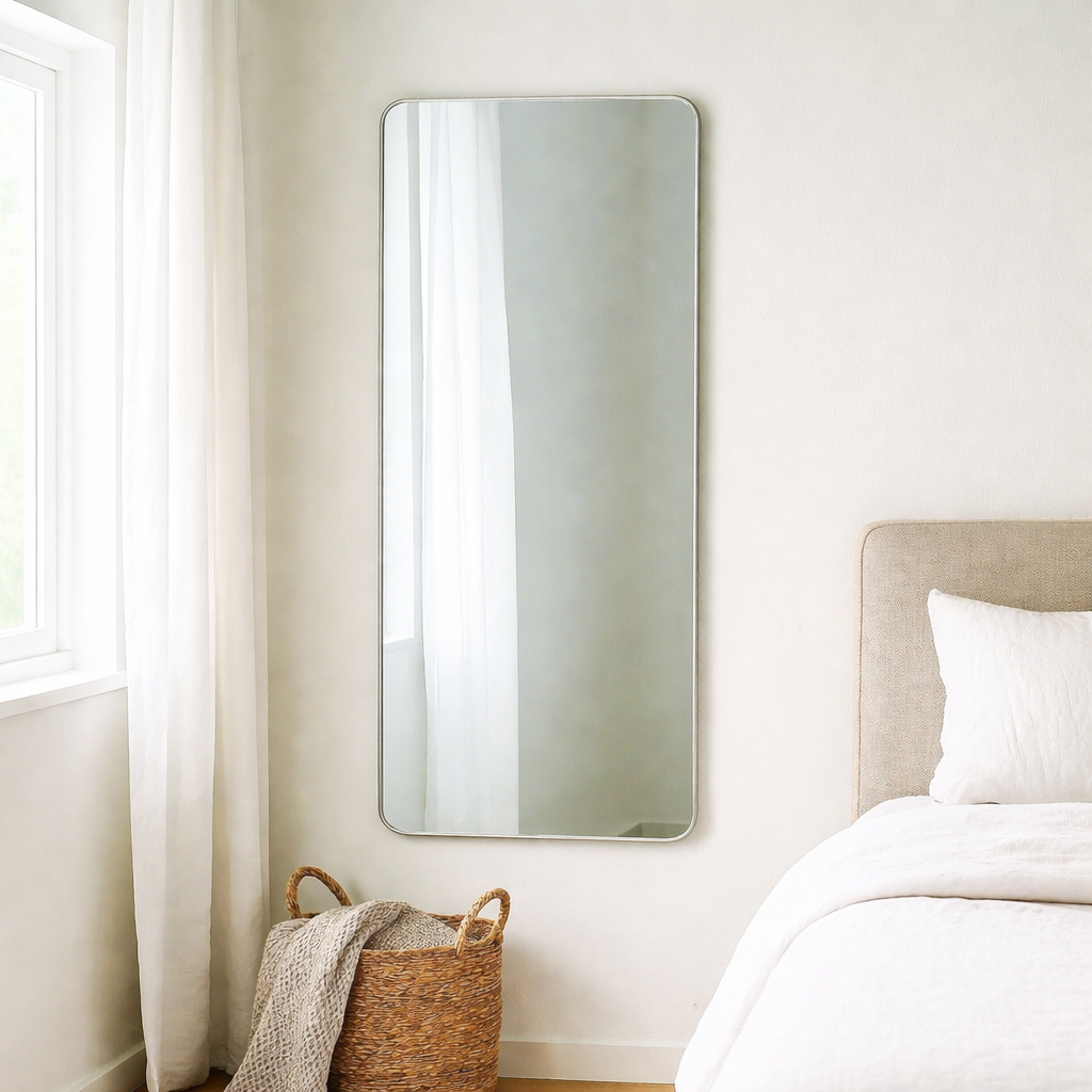 מראה מלבנית פינות מעוגלות פרופיל דק צבע בהיר S-XL