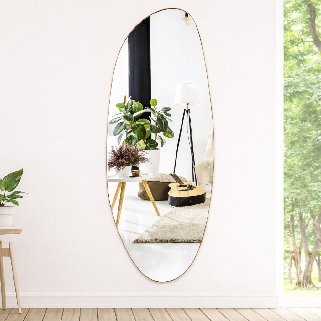 מראה אליפסה מתכת פרופיל דק צבע זהב תלייה לאורך ולרוחב S-XXL