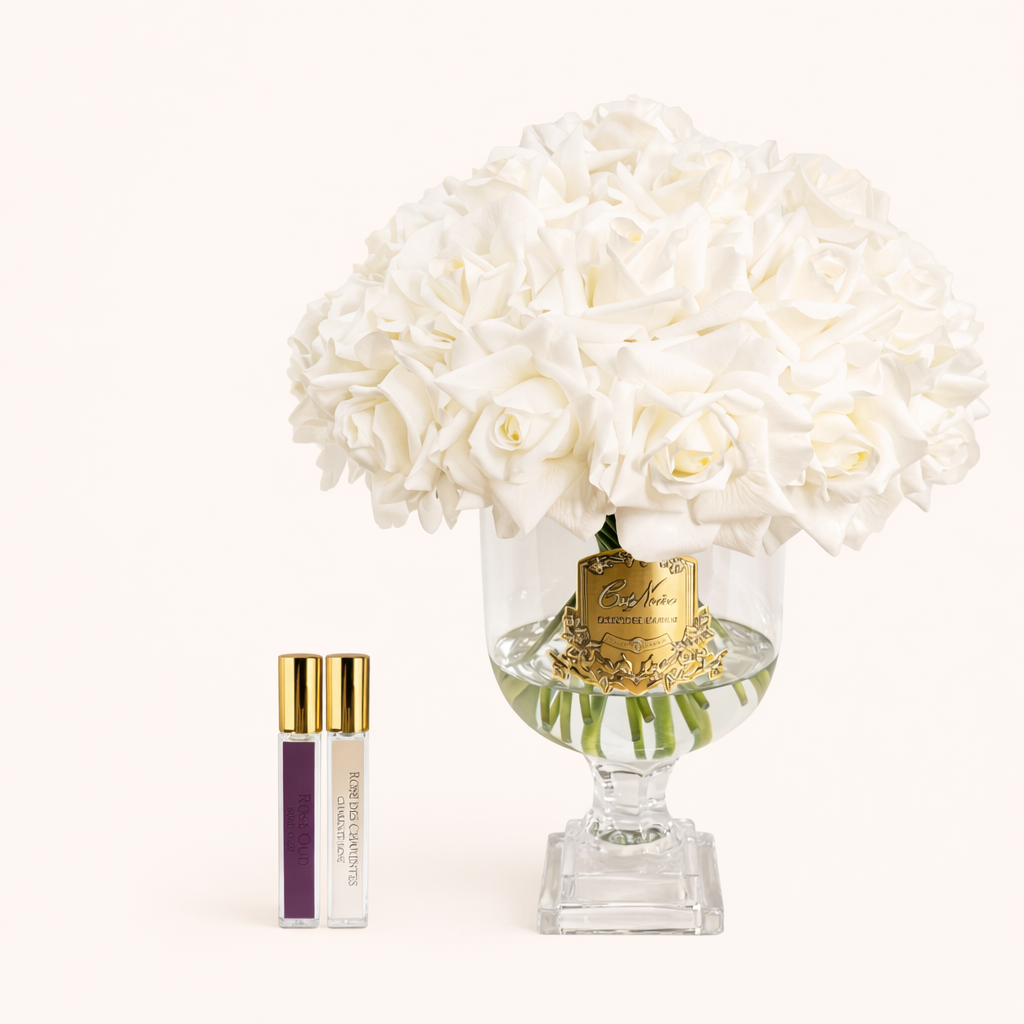 37 ורדים לבנים בכלי קריסטל יוקרתי