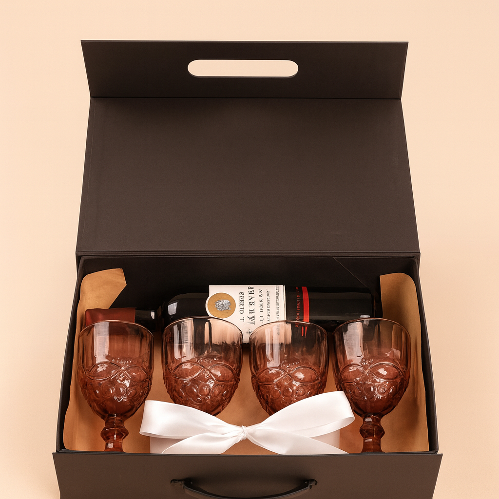 מארז המתנה הזה נוצר עבור רגעים מיוחדים – שילוב אלגנטי של יין איכותי עם כלי זכוכית מרשימים, המבטיח חוויית אירוח מושלמת.