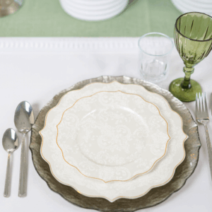 שולחן לבן עם נגיעות ירוקות – שילוב מושלם של רוגע ואלגנטיות.