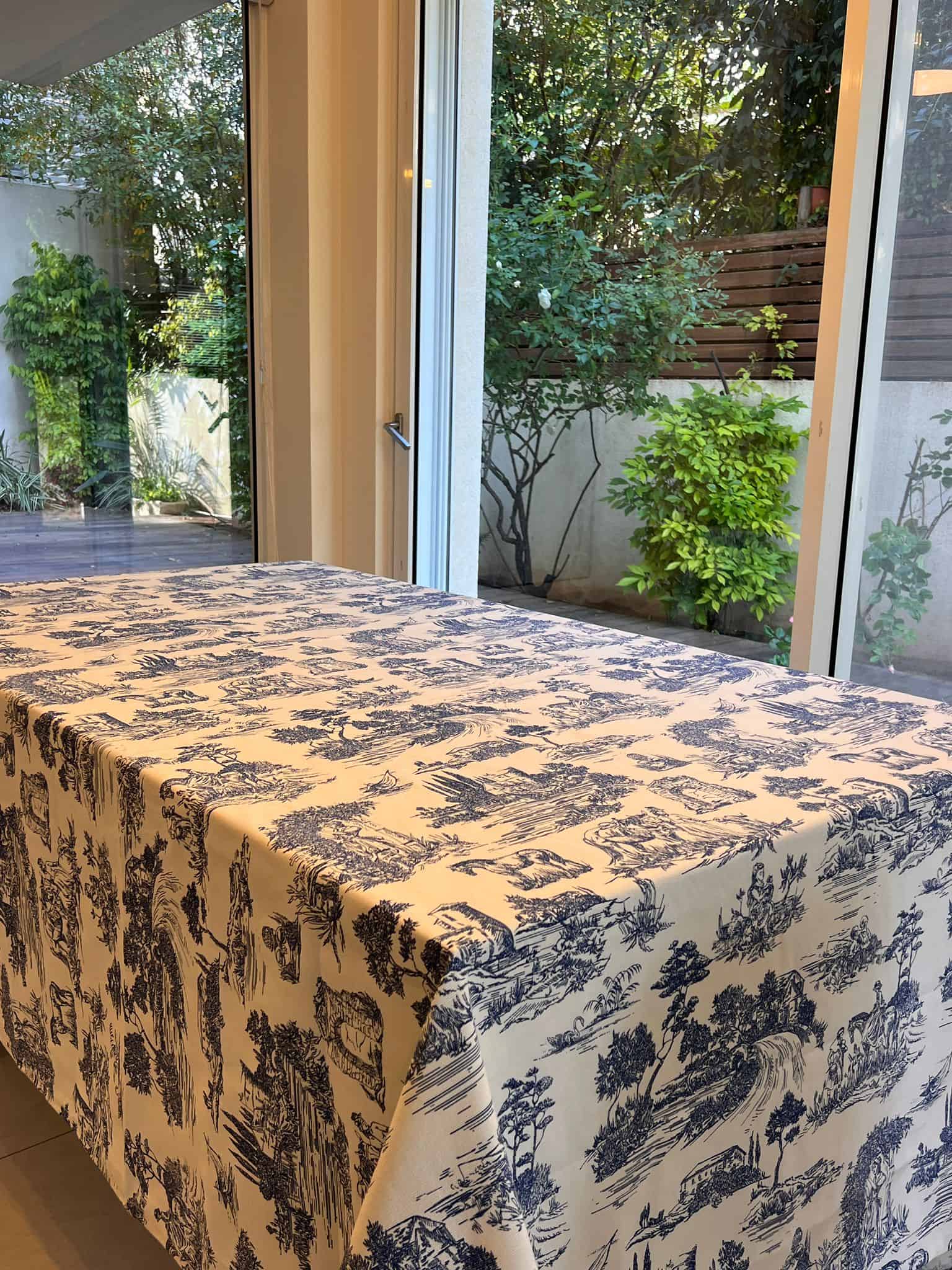 מפה יוקרתית בהשראת הסגנון הצרפתי הקלאסי, בעיטור הדפס אמנותי בגווני כחול ולבן. הדוגמה האלגנטית יוצרת מראה מוקפד, על־זמני ומלא אצילות – כזה שמעניק לכל שולחן תחושת יוקרה, ניקיון וסטייל אירופי אמיתי.