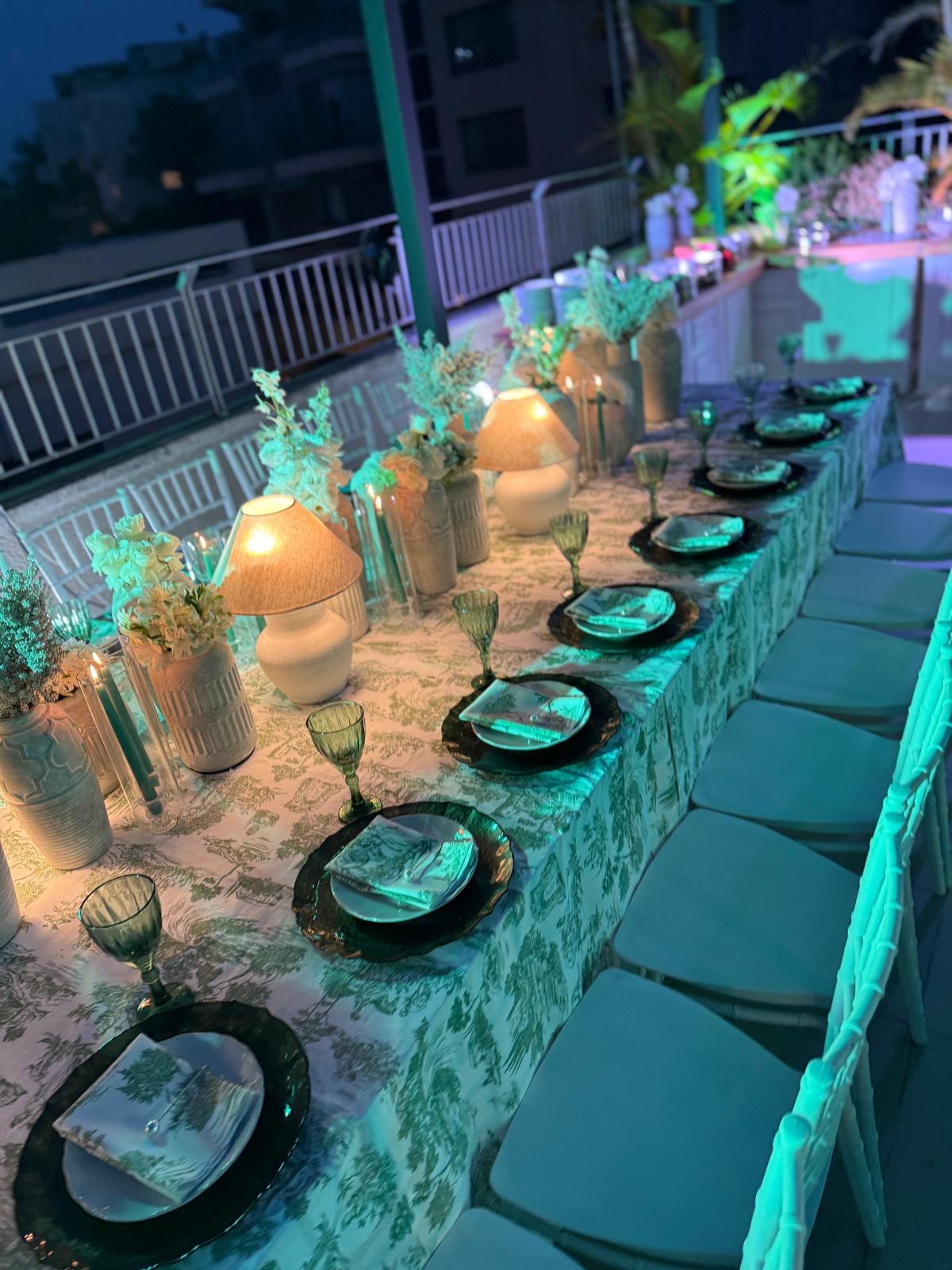 לשולחן מושלם בסגנון אירופאי קלאסי, שלבו את מפית דיור ירוק עם כלי קרמיקה לבנים, כוסות זכוכית ירקרקות ואלמנטים דקורטיביים בגווני ירוק עדין – ליצירת שולחן חגיגי שמשדר רוגע ויוקרה גם יחד.