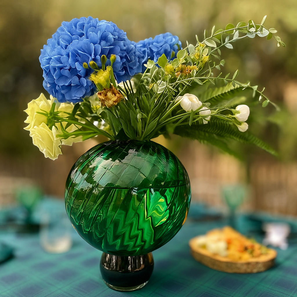 שלבו את המפית עם טבעות מפיות מעץ או מתכת שחורה ליצירת ניגוד מעניין, והניחו אותה על מפה בגווני שמנת או בז’ בהיר כדי להדגיש את ההדפס הירוק. להשלמת המראה, הוסיפו סידור פרחים ירוקים טריים – כמו אקליפטוס או רוזמרין – לקבלת שולחן מלא חיים, טבעיות וסטייל.