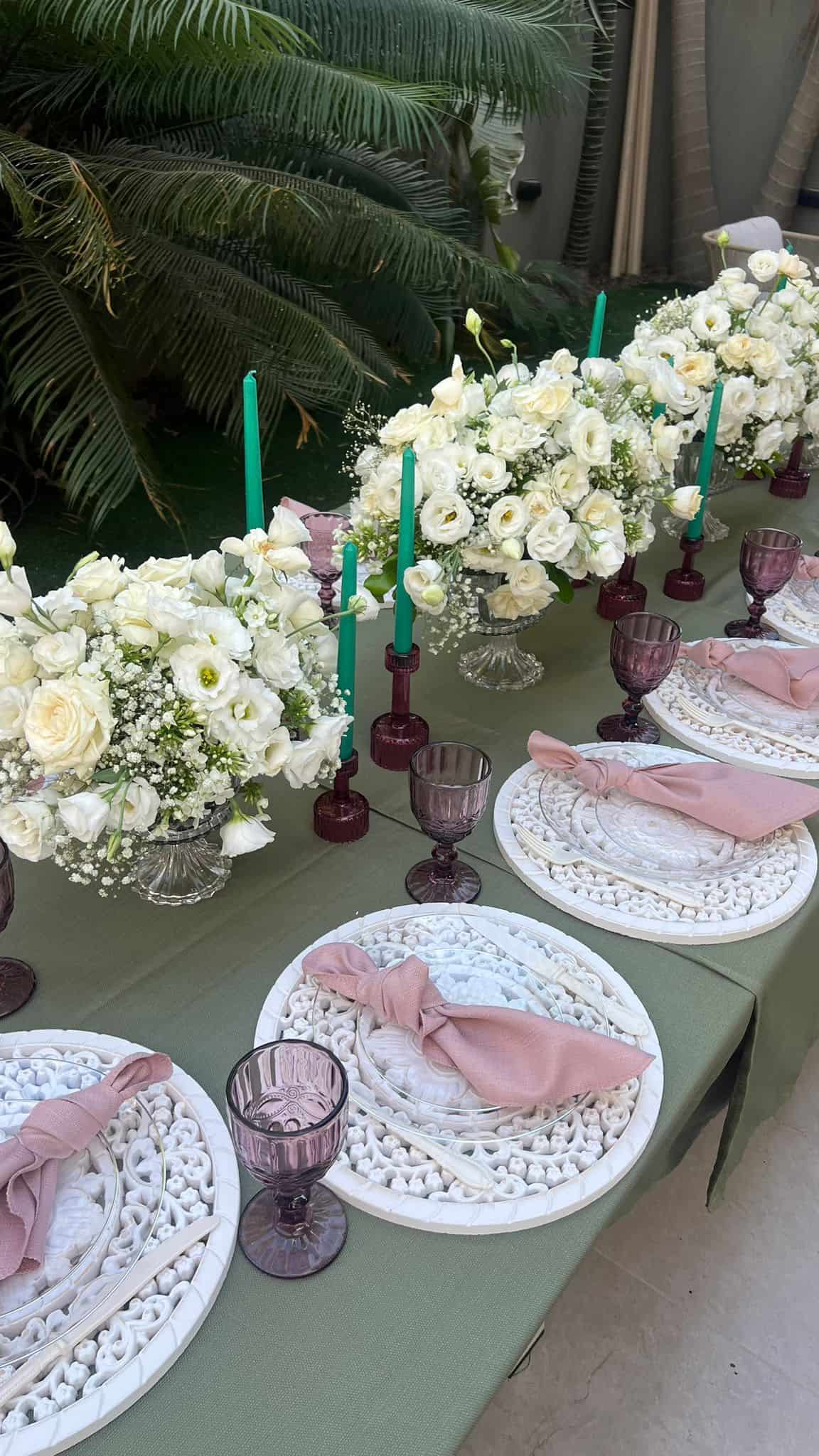 שלבי עם פלייסמנטים מנוגדים או תואמים, סכו”ם מתכתי, ונגיעות טבעיות כמו פרחים טריים או עציצים קטנים ליצירת אווירה מושלמת.