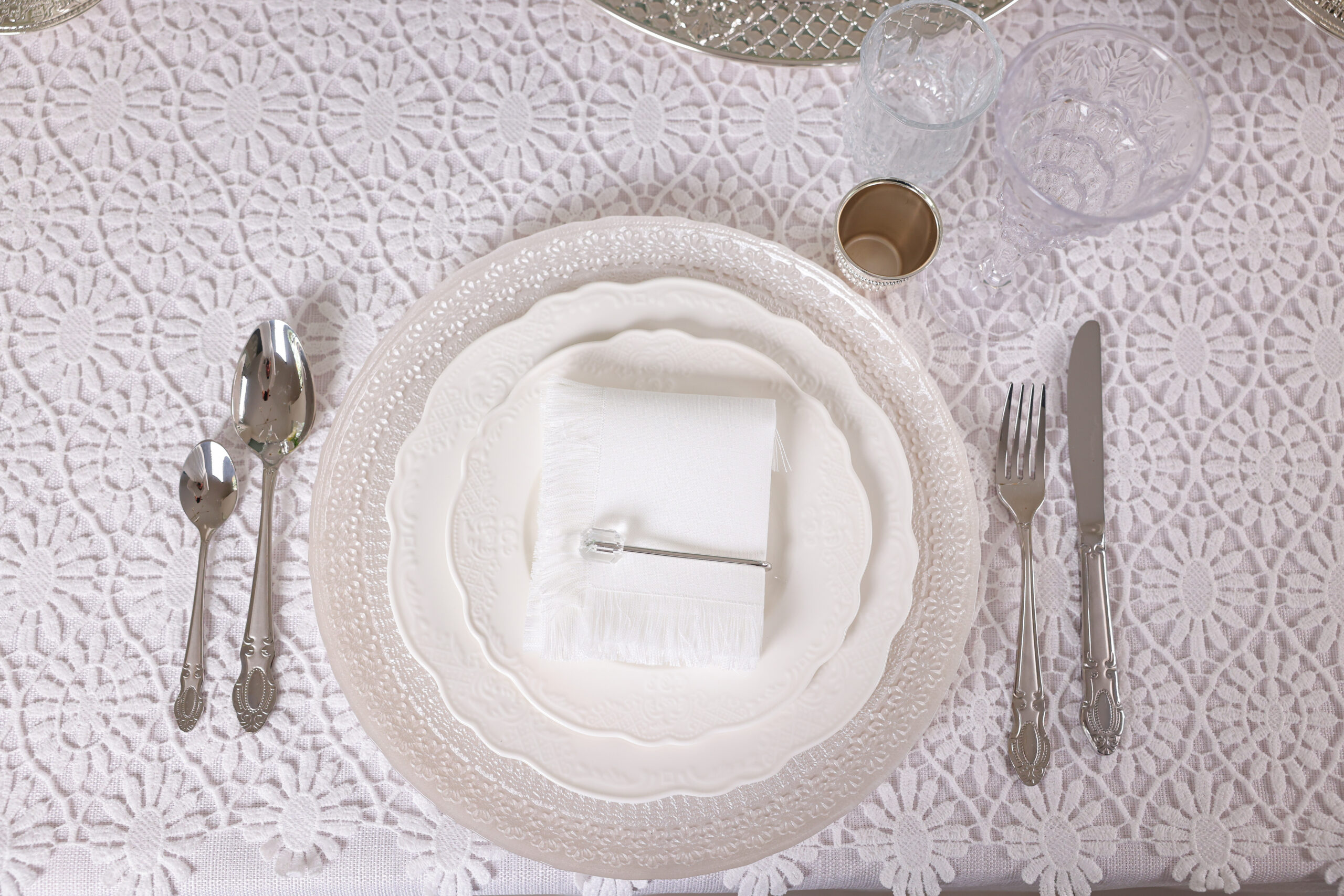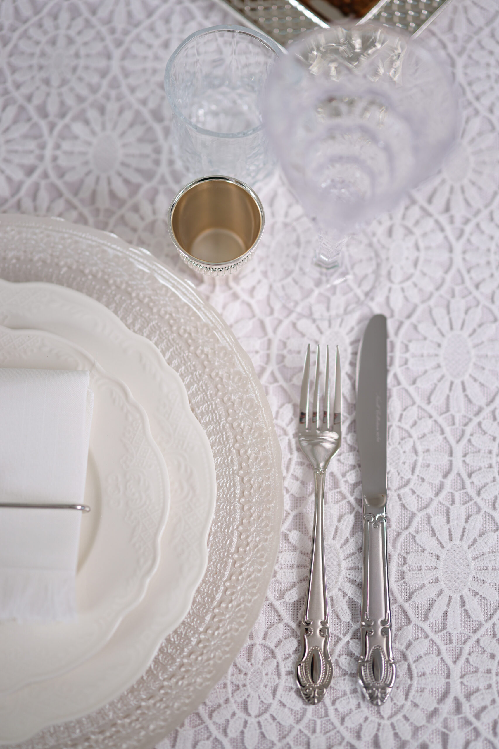 כדי להעצים את האווירה הקלאסית, שלבו את סט סכו״ם בארוק כסף עם מפות תחרה לבנות וצלחות פורצלן מעוטרות. כך תצרו מראה מלכותי ומפואר, שישדרג כל ארוחה לאירוע בלתי נשכח.