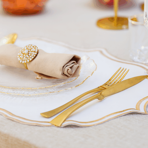 כדי ליצור שולחן מעורר השראה, שלבו את הסכוּם עם מפיות פשתן טבעיות, טבעות מפיות יוקרתיות וכלי זכוכית עם פס זהב עדין. השילוב בין מרקמים עדינים לנגיעות זהב יוצר אווירה חגיגית ומסוגננת, שתהפוך כל ארוחה לאירוע בלתי נשכח.