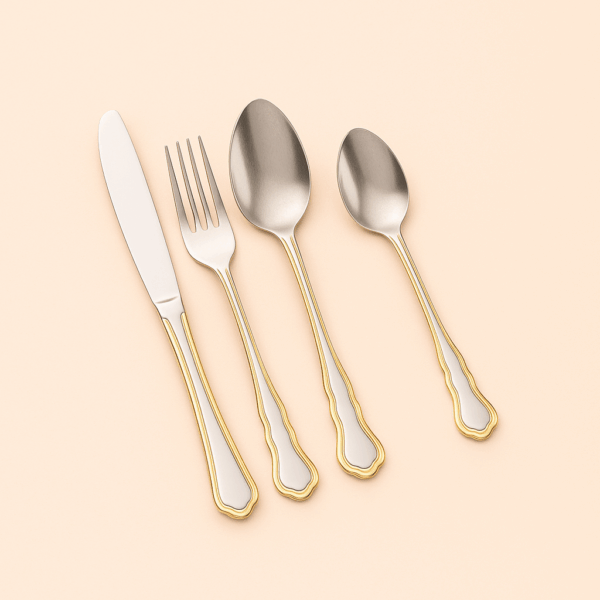 הכירו את סכו”ם כסף זהב WAVES – מערכת יוקרתית ומעוצבת שמשלבת את הברק האלגנטי של נירוסטה כסופה עם פסי עיטור בצבע זהב מבריק לאורך הידיות. העיצוב הקלאסי עם הקווים הגליים מעניק לכל שולחן תחושת פאר ואווירה מלכותית, ומתאים במיוחד לאירוח חגיגי או לארוחות משפחתיות מוקפדות.